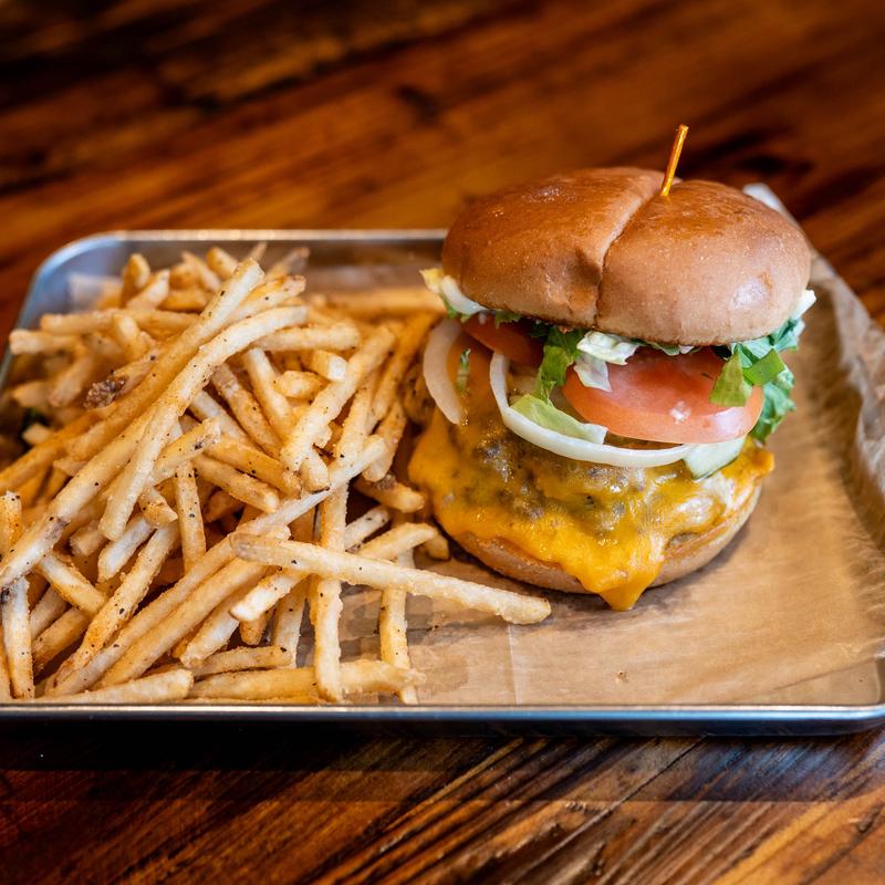 Two patties, house-made beer cheese, applewood bacon, smoked cheddar & fried onion.